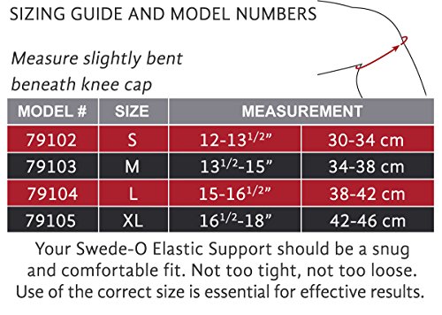 -. Feature : Swede-O Elastic Supports are designed with no seams and will comfortably contour to the natural shape of your Knee. / This product provides even compression and support to weakened or injured knees.