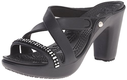 A strappy, stylish update to a crocs favorite, croslite material footbed cushions and comforts, sculpted heel with non- marking outsole, approximately 3.5- inches heel for a little liftFeature