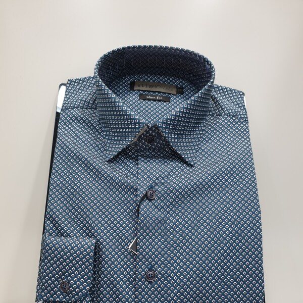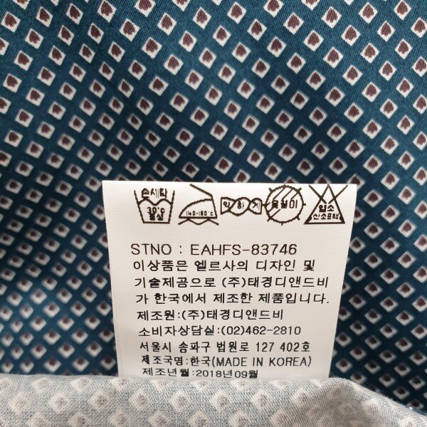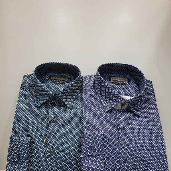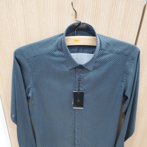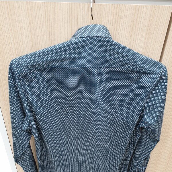 사틴 사각 프린트 원단카라 스냅버튼커프스 폭 5cm 작업뒷다트 없이 사이즈 그대로 진행한 슬림 스타일