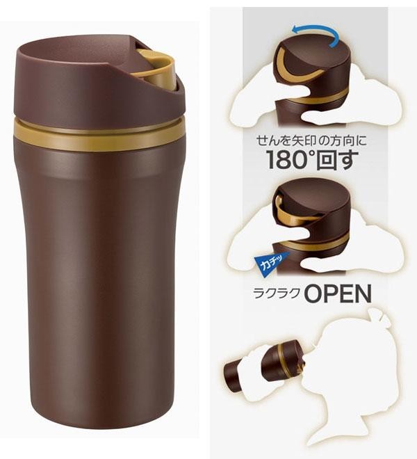 せんを180度回すだけで、ラクラクOPEN!!そのまま飲むことができるので、外出先でも本格的なコーヒーを楽しめます♪ふた・本体を丸洗いできるから清潔!! |