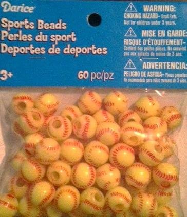 - There are 60 plastic beads in this pack, yellow softballs with red strings