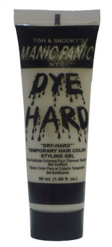 AUTHENTIC TISH & SNOOKY'S MANIC PANIC MERCHANDISE Dyehard Temporary Hair Color Styling Gel. It is very easy to use: Just place gel on fingertips or on a tinting comb and apply to hair. Get creative and have fun with it! It washes out instantly so you can't go wrong. DYE HARD Gel dries hard and holds hair in place.This product does it all - styles, holds, adds color all in one.The DYE HARD Gel may be used for spiking, tipping, adding a streak dash or splash of color, coloring an entire head. Best thing about the DYE HARD Gel is that it shampoos right out of your hair with ease. This product is ideal for kids and adults alike who seek "color without commitment". Work it in, wear it out, wash it out!- Thick opaque temporary hair color styling "gel" available in an easy to use squeeze tube- Hard holding formula may be used for styling as well as coloring.