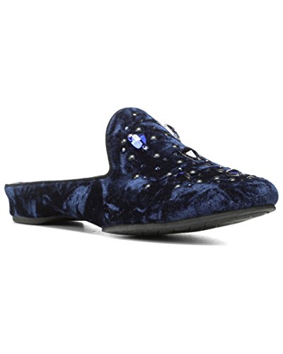 Studio : Donald Pliner Publisher : Donald Pliner Binding : Apparel Product Description Color/material: navy crushed velvet; kid suede. Soft metallic PU insole. Rubber sole. 0.75in heel. Please note: All measurements are approximate and were taken from a size 6M; slight variations may occur.. Imported 0