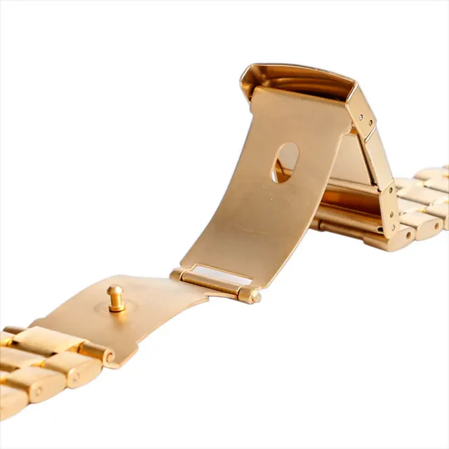 항목 설명:100% 브랜드 새로운 높은 품질재질: 스테인레스 스틸버클 유형: 배 걸쇠 하나의 푸시 버튼밴드 색상: 황금밴드 길이: 17-23.5 센치메터밴드 폭: 18/20/22 미리메터 패키지 포함:1 * 시계 밴드2 * 봄 바