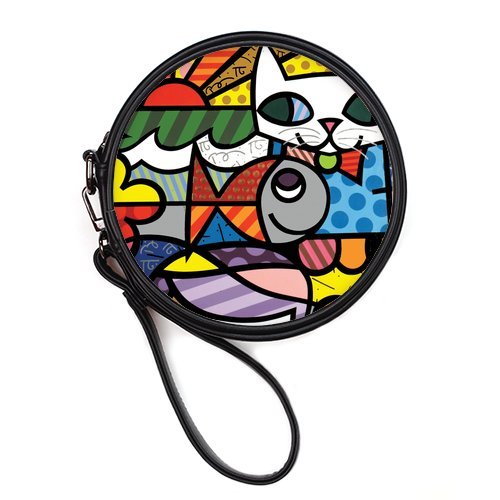 -. Brand : LaHuo Makeup Bag -. Color : Romero Britto 2 -. Department : womens -. EAN : 6041138835786 -. Feature : Made from high-grade PU leather / Dimensions: 7"diameter * 1.5" height / Wristrap handle for easy carrying / Pretty patterns printed on front / Do NOT handle with rubbing alcohol, alcoholic beverages, liquid bleach or harsh chemicals -. Model : MBP26802 -. PackageQuantity : 1 -. ProductGroup : Apparel -. ProductTypeName : LAGE -. Title : LaHuo Custom Design Romero Britto Art Painting Cat Love Fish Women Make Up Bag Personality Round Makeup Bag Coin Purse