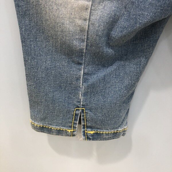 뒷트임이 포인트인 청바지입니다면이 얇고 부드러워 돌쟁이 아기들도편안하게 입힐 수 있어요 5호 -2,3세 7호 - 3,4세 9호 - 5,6세11호 - 6,7세 13호 - 7,8세사이즈 여유있게 주문해주세요