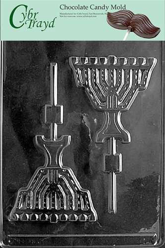 Cybrtrayd R012 Menorah Lolly Chocolate Candy Mold with Exclusive Cybrtrayd Copyrighted Chocolate Molding Instructions plus Optional Candy Packaging Bundles