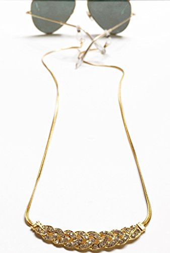 Sintillia Crystal Backlace Sunglass Strap, Glasses Chain, Eyeglass Cord, Gold with Black Attachments