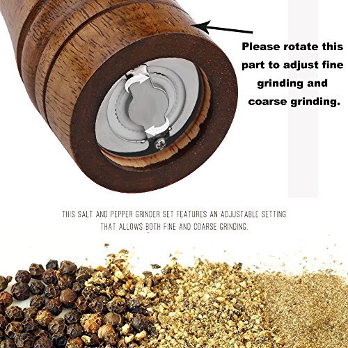 EASY TO ADJUST AND USE - The grinder measures 5.5*20.5cm / 2.2*8" (D*H), it does not come filled with spices. This salt and pepper grinder set features an adjustable setting that allows both fine and coarse grinding.Adjustable rotor, easy to use.
