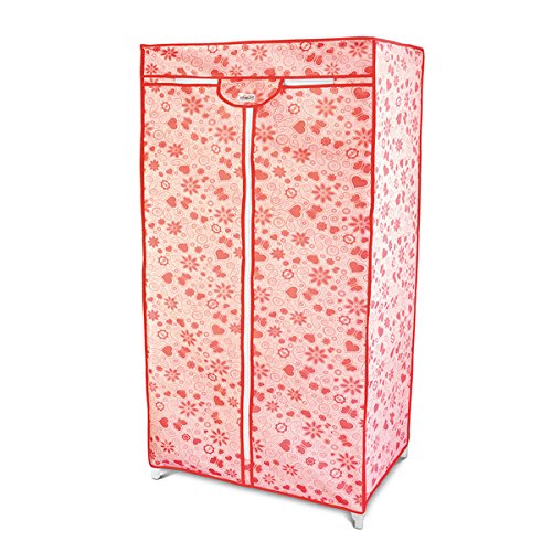 -. Title : Pink Floral Plastic Steel Wardrobe Portable Organizer