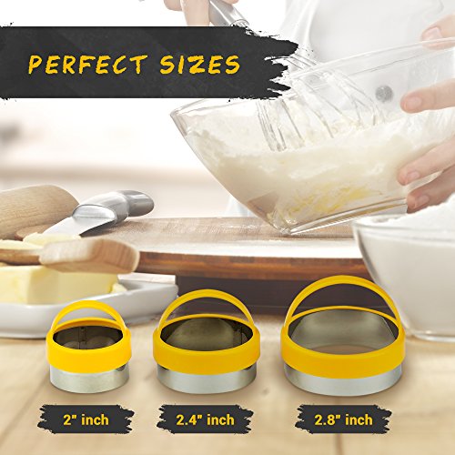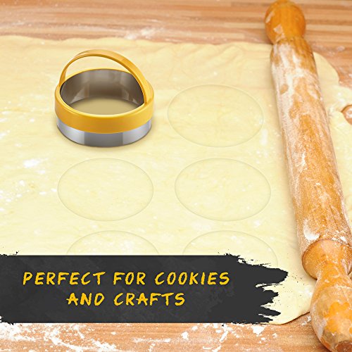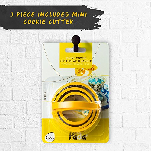 Pada Cookie Cutters - Stainless Steel Round Cookie Cutter Set for Pastries, Empanadas, Doughnuts, Biscuits - 3 Piece includes Mini Cookie Cutter for Kids (Round)