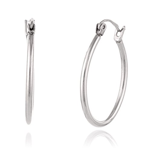 Classic and fashionable hoop earrings. The earrings are made of high quality surgical grade stainless steel. They would look perfect with business attire as well as adding an elegant touch to a simple tee. This pair is sure to be a welcome gift and become a treasured part of anyone's jewelry collection. Treat yourself, family and friends to these gorgeous diamond earrings. They even come in a gift box that is perfect for gifting especially now that the holidays are right around the corner! Click the 'Add to Cart' button now!Feature
