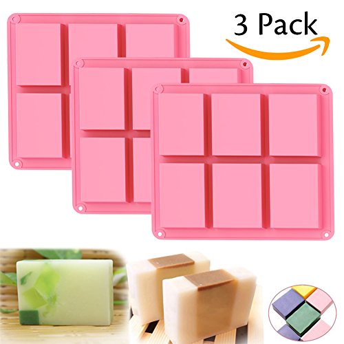Ozera 6 Cavities Silicone Soap Mold (3 Pack), Baking Mold Cake Pan, Biscuit Chocolate Mold, Ice Cube Tray