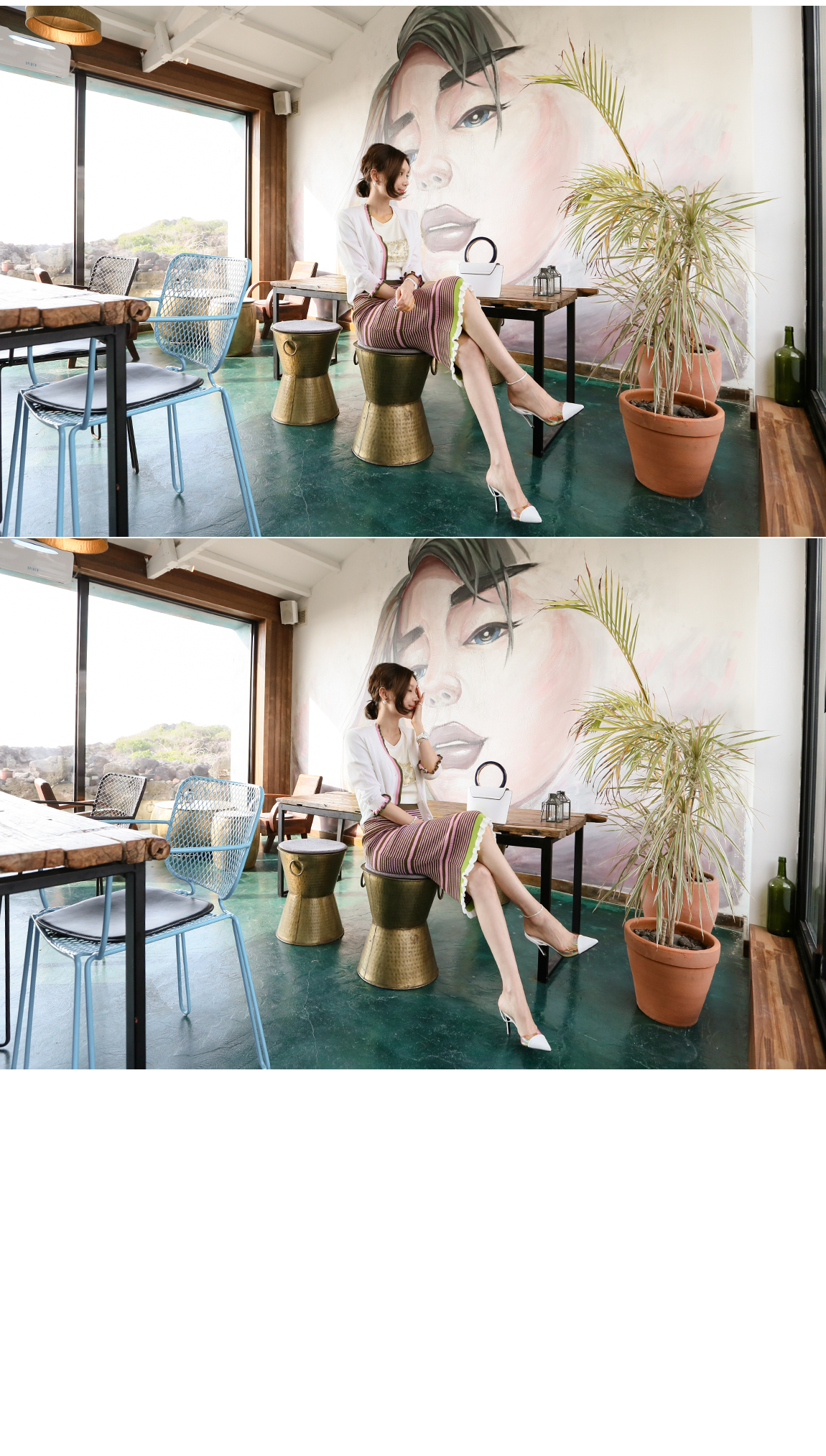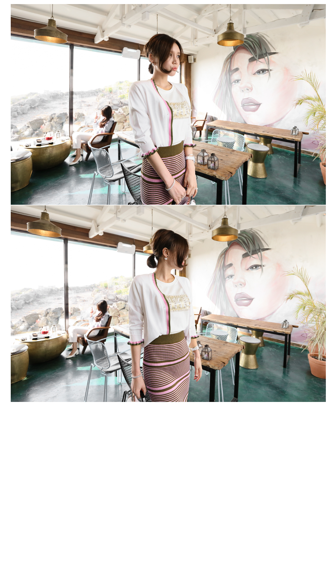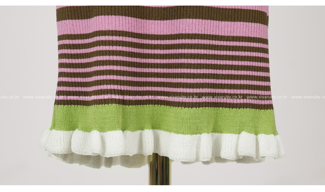 밑단의 배색 프릴 디테일로 유니크한 포인트를 주었답니다