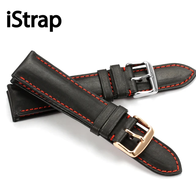 | [해외]IStrap 18 미리메터 19 미리메터 20 미리메터 21 미리메터 22 미리메터 블랙 레드 스티치 정품 가죽 손목 시계 스트랩 omega tissot 세이코 시계 밴드 |