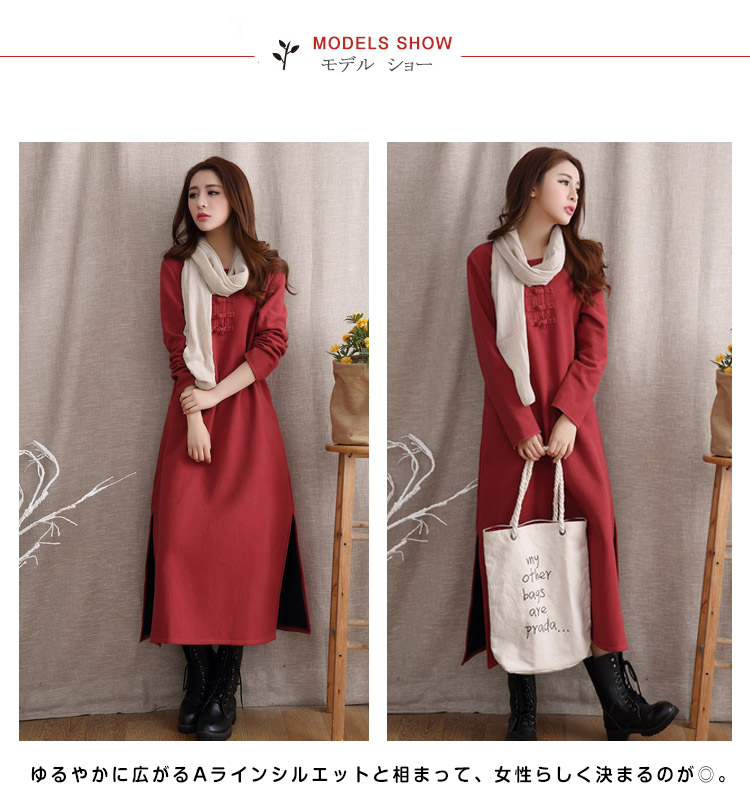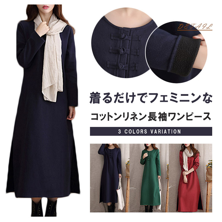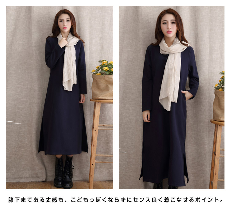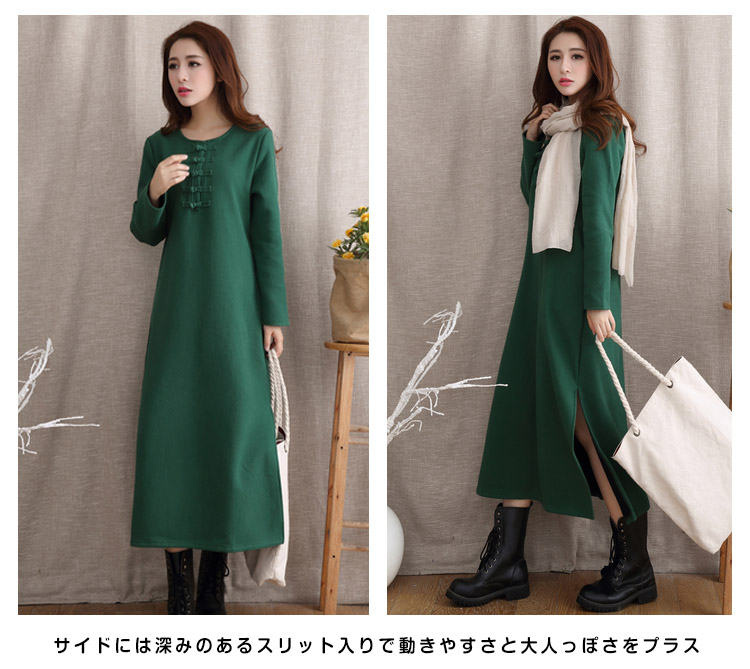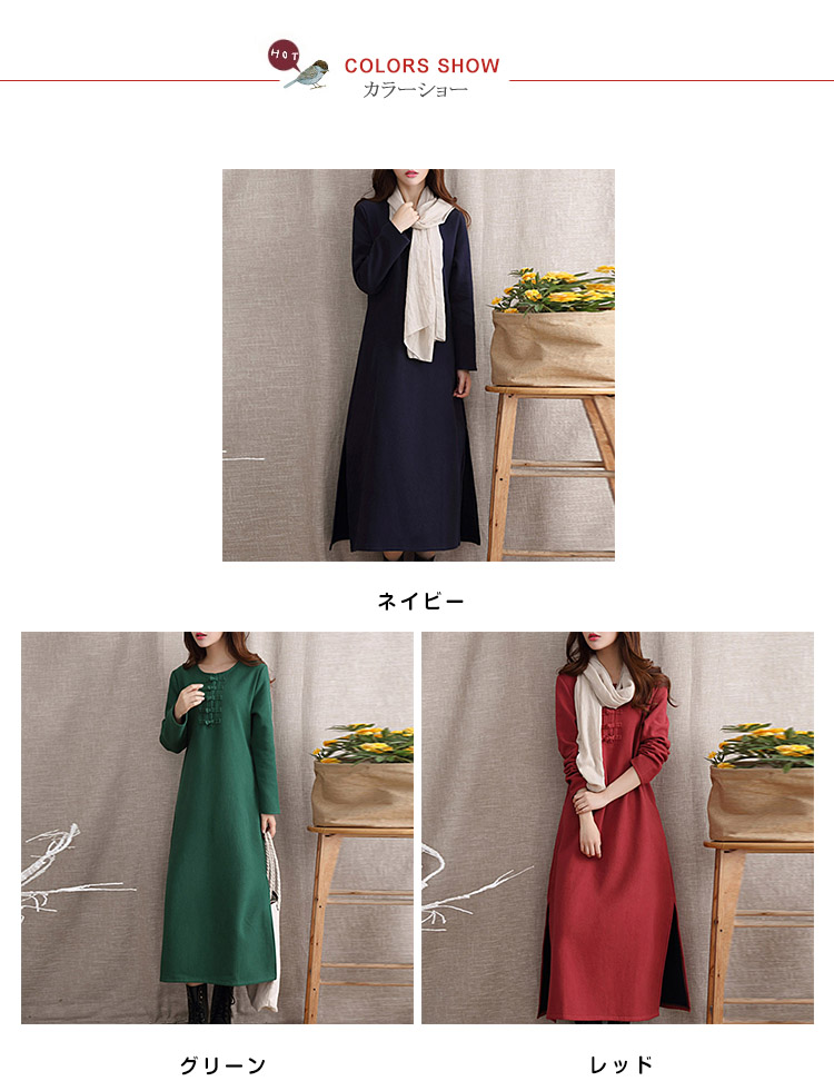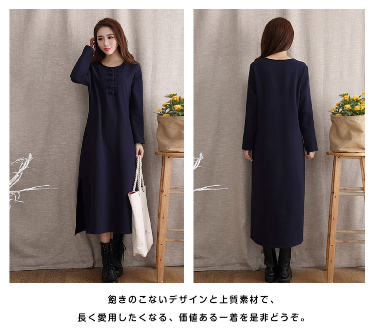| 着るだけでフェミニンな、コットンリネン長袖ワンピース。ゆるやかに広がるAラインシルエットと相まって、女性らしく決まるのが◎。サイドには深みのあるスリット入りで動きやすさと大人っぽさをプラス膝下まである丈感も、こどもっぽくならずにセンス良く着こなせるポイント。飽きのこないデザインと上質素材で、長く愛用したくなる、価値ある一着を是非どうぞ。 | |