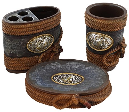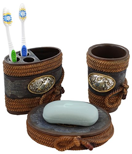 Western Silver Horse Buckle 3 Pc. Bathroom Bath Set - Toothbrush Holder, Tumbler & Soap Dish