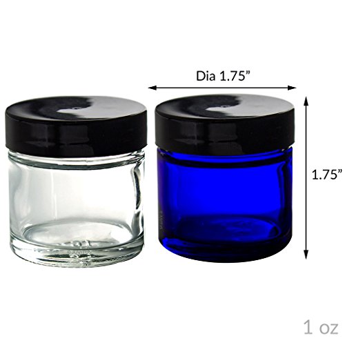 Clear and Cobalt Glass Straight Sided Jar Set of 12: Includes 6 -1 oz Cobalt Blue Glass Jars and 6 -1 oz Clear Glass Jars + Spatulas and Labels for Aromatherapy,...