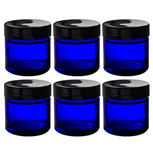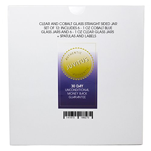 Includes 6 - 1 oz Clear Straight Sided Glass Jars and 6 - 1 oz Cobalt Straight Sided Glass Jars with spatulas and 12 Labels