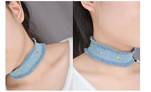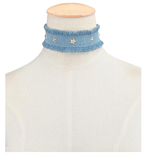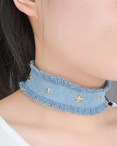 Venusvi Fashion Fabric,Wathet Velvet Denim Star Choker Necklace for Girls and Women