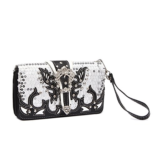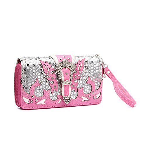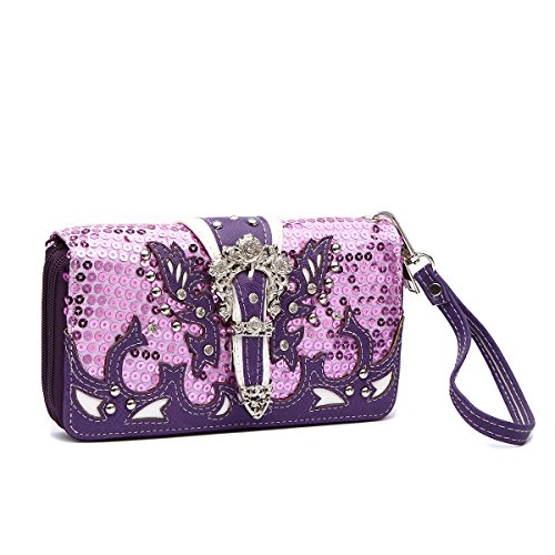 -. Title : Western Wallet - Shiny Sequin Butterfly with Silver Buckle Wallet
