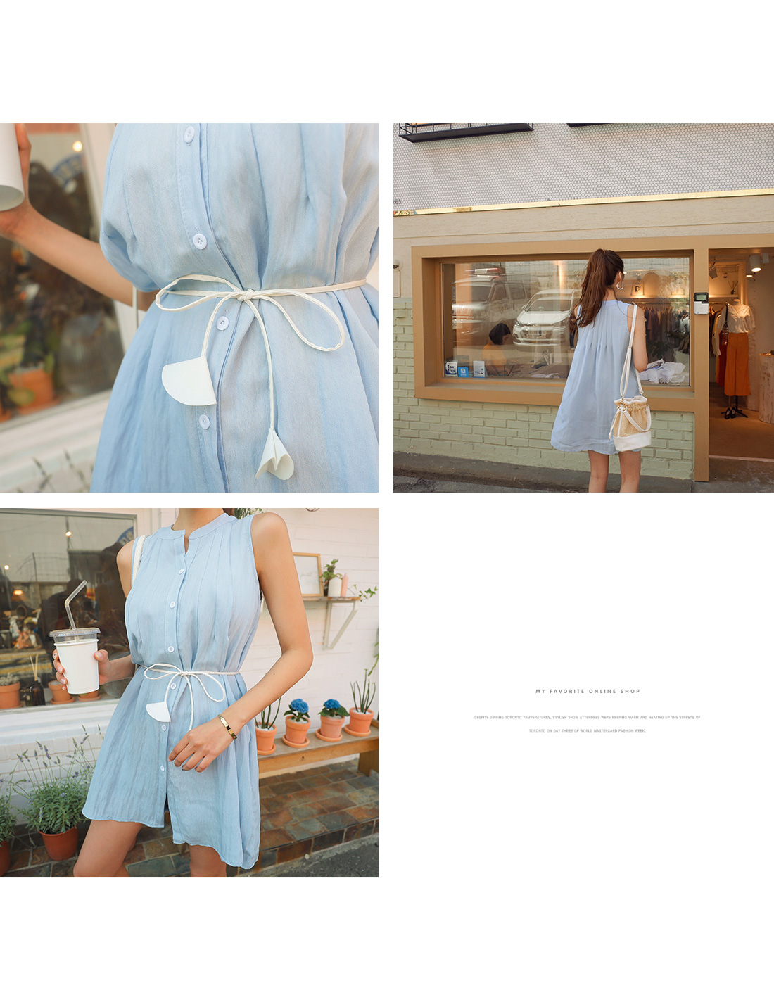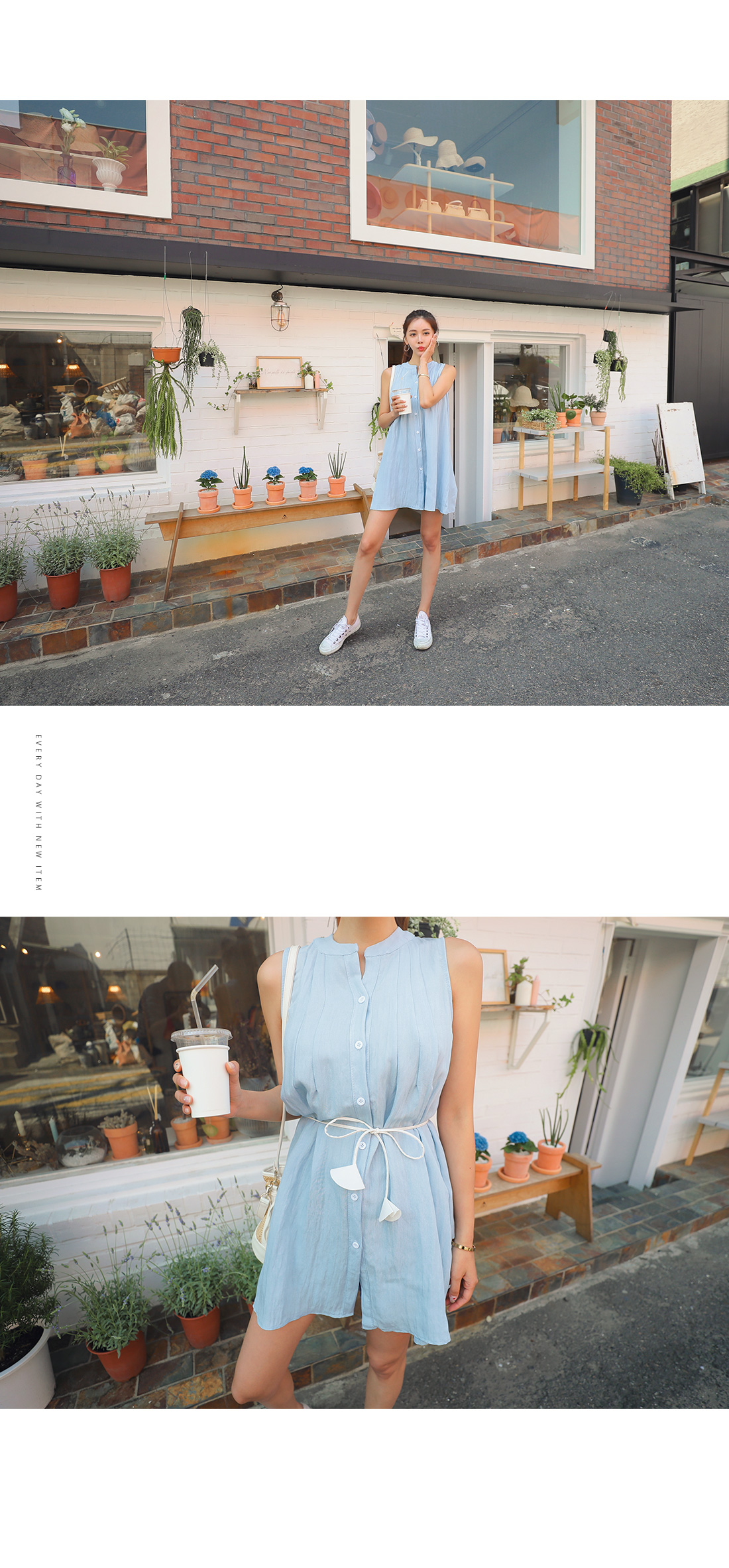 MD COMMENT 여성스러움을 가득 담은 "엘레나 벨트 블라우스" 소개할게요.여성스러운 차이나 넥라인으로 떨어지며프론트 단추로 쪼르르 클로징을 도와드리며숄더라인부터 바스트라인에 연결되는 핀턱주름으로라인감있게 디자인 해주었어요.살짝 A라인으로 떨어지며 힙을 덮어주는 롱 기장감으로키가 작으신 분들은 원피스로도 활용도 좋아요.기장이 부담 스러우신 분들은 짧은 쇼츠나 스키니팬츠와 코디해 주시면 좋아요!가죽소재 벨트가 SET로 구성되어 허리에 리본으로묶어 라인을 잡아서 착용해주시면 좋구요따로 활용할수 있어 더욱 실용적이에요^^여유 있는 핏으로 편안하게 즐기기 좋으며하늘하늘거리는 소재로 가벼운 착용감을 느낄 수 있어요.모델 회지언니는 안에 숏팬츠와 함께 코디해서 미니원피스로 입었답니다^^COLOR/SIZE 블루FREEMODEL FITTING 블루/FREE