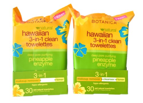 Alba Botanica Hawaiian 3-in-1 Clean Towelettes, 30 Count, Pack of 2