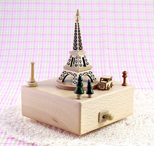Delightful Quality Wooden Musical Box Featuring Iconic Eiffel Tower with Small Moving Magnetic Car - Plays "Castle In The Sky" Song│Valentine's Day Gift For Her
