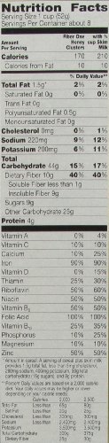 -. Binding : Grocery -. Brand : Fiber One -. EAN : 0016000275782 -. Feature : FUEL YOUR MORNING: Delicious honey clusters cereal to help keep you full throughout the morning / WHOLE GRAIN: Made with 30 grams of whole grain per serving (At least 48 grams recommended daily) / HIGH FIBER: Contains 40% Daily Value of Fiber; Diets high in fiber can help keep your digestive system on track, yet only 1 out of 10 Americans get enough / NUTRIENT-RICH BREAKFAST: An excellent source of folic acid and iron and packed with 12 vitamins and minerals / BOX CONTAINS: 1 cereal box, 14.25 oz; A tasty and nutritious cereal for the whole family -. Label : General Mills Cereals -. Manufacturer : General Mills Cereals -. MPN : DCS-839 -. PackageQuantity : 1 -. PartNumber : DCS-839 -. ProductGroup : Pantry -. ProductTypeName : GROCERY -. Publisher : General Mills Cereals -. ReleaseDate : 2014-04-24 -. Studio : General Mills Cereals -. Title : Fiber One Cereal, Honey Clusters, Whole Grain Cereal 14.25 Oz -. UPC : 016000275782