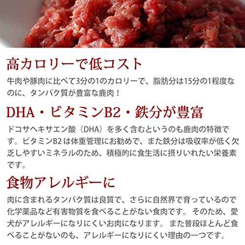 原材料:原材料:エゾ鹿肉/コエンザイムQ10/タウリン/BCAA/カロリー(100g中):90kcal 脂質:0.3g 鉄分:4.57mg たんぱく質:21mg