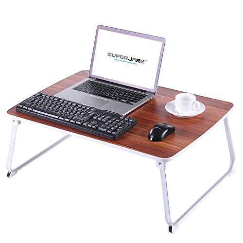 [EXTRA LARGE] Bed Table for Laptop, Superjare Foldable Standing Desk, Portable Outdoor Camping Table, Laptop Desk with Legs - American Cherry