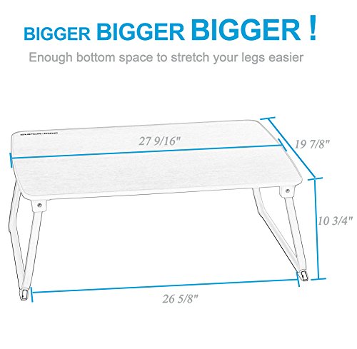 BIGGER BIGGER BIGGER - With a large tabletop size: 27 9/16"L x 19 7/8"W, perfectly fit all size laptops with a keyboard and mouse space. Plenty of room at the sides for your mouse to move, elbows to rest as well as a underneath room for legs to stretch - It's a smart choice!
