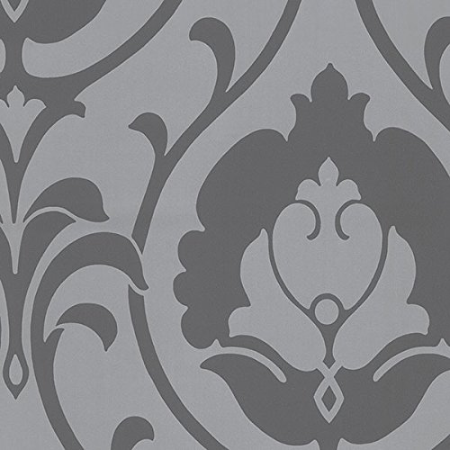 Manhattan comfort NWTU27103 Edinburgh Series Vinyl Heirloom Damask Design Large Wallpaper Roll, 20.5" W x 32.7' L, Charcoal/Silver