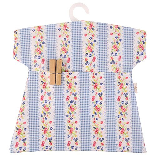 Neoviva Waterproof Clothespin Peg Bag with Plastic Hanger, Pack of 2, Floral Striped Blue