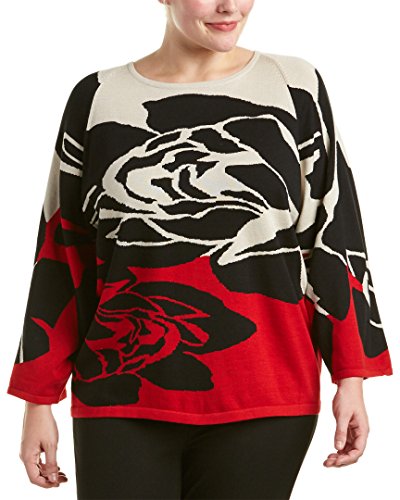 Joan Vass Women's Plus Size Rose Intarsia Sweater