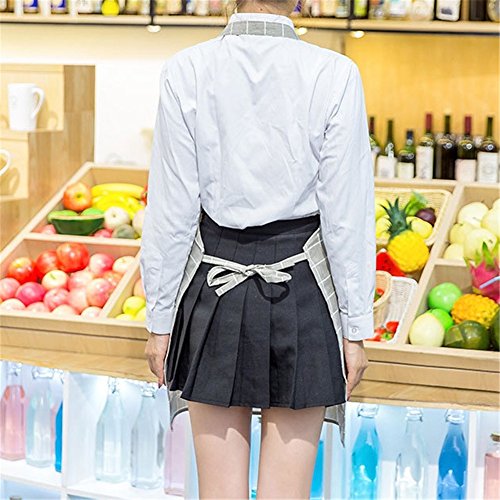 Mofeng Cotton Restaurant Kitchen Bib Grey Check Apron with Pocket for Men Woman