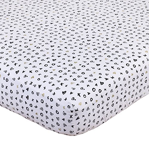 -. Feature : This NoJo Cotton Fitted Crib Sheet is a stylish addition to your baby's nursery and features black X's and O's and metallic gold hearts / Fabric is 100% cotton, providing the optimal mix of durability, beauty, breathability, and ease of care / Fitted sheet is fully elasticized with an 8 inch pocket to fit all standard sized 52 by 28 inch crib mattresses; designed specifically to make those middle of the night sheet changes quick and easy / Made with busy new moms in mind; just machine wash and tumble dry / Complete your nursery decor with coordinating crib bedding and accessories from the NoJo XOXO Collection