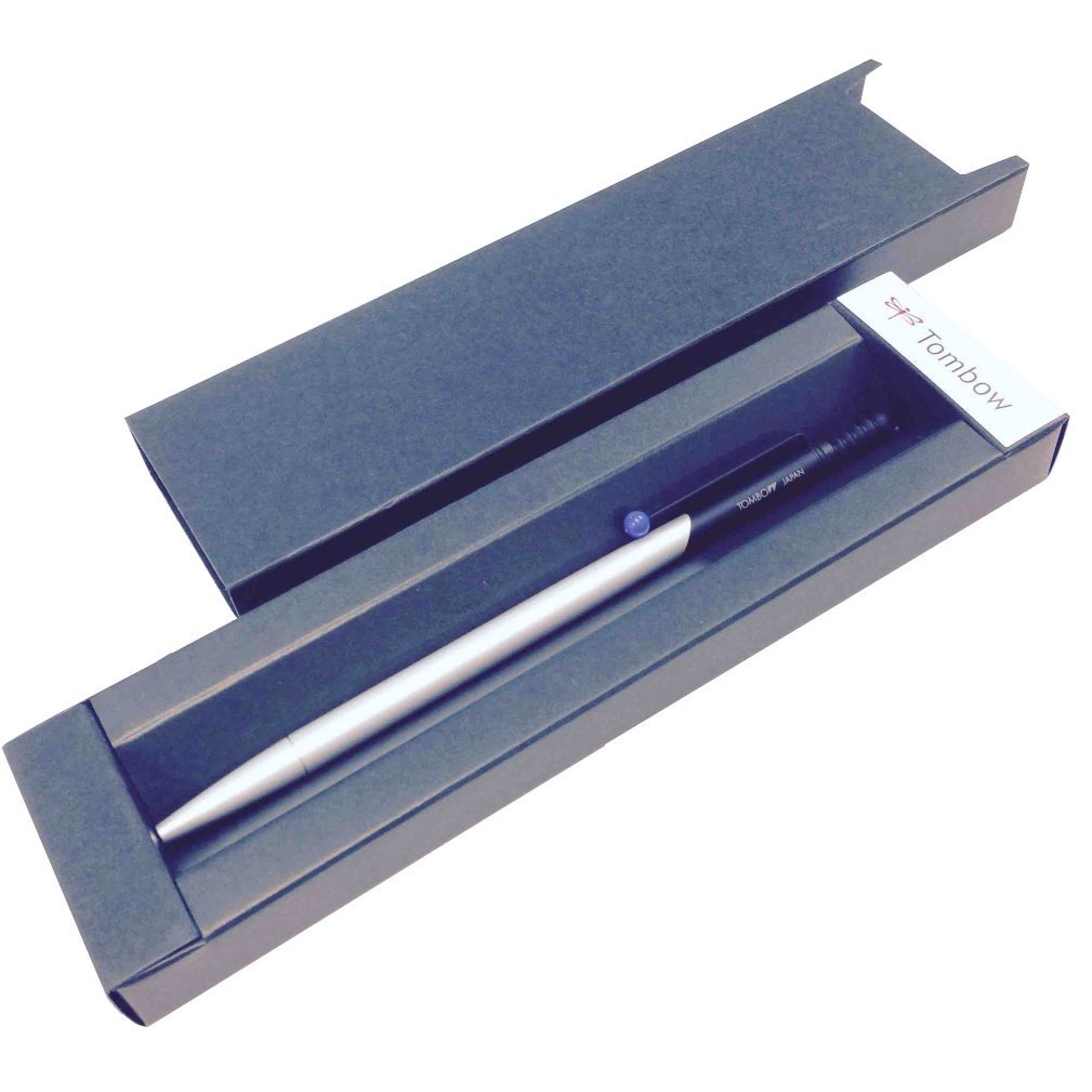 Tombow Slim Line 727 Ballpoint Pen Silver-Black with Blue Clip Ball