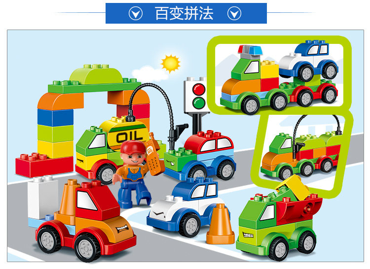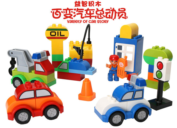 百变汽车总动员大颗粒积木儿童拼装益智玩具宝宝礼物早教积木