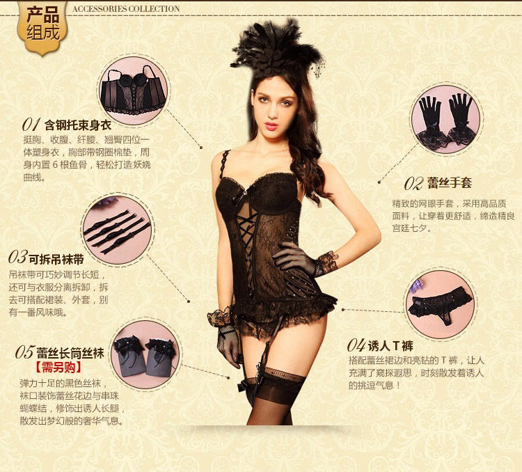 珞樱~欧美系性感束身衣含吊袜带排扣调节 情趣内衣制服诱惑D248