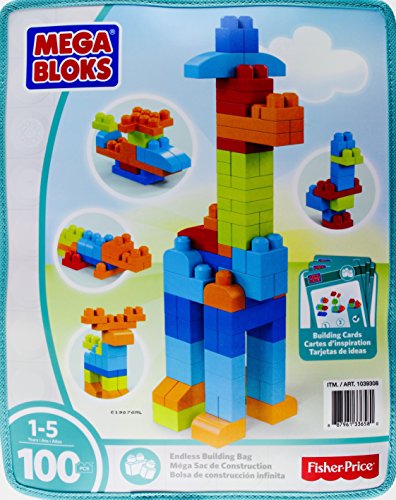 Studio : Mega Bloks Publisher : Mega Bloks Binding : Toy Product Description Build them up with the Mega Bloks with Endless Building Bag by Fisher, 100 Pieces. Build and stack for limitless fun with award-winning Mega Bloks. These bright primary-colored blocks encourage hands-on exploration as children imagine and create. Mega Bloks are big and easy for little fingers to assemble. When playtime is over, zip the blocks up in an eco-friendly bag and stash them in the toy box until the next adventure. Ideal for ages one and up. Product Details: 100 blocks for hours of play. Includes Building Cards and Endless Building Bag. Portable, PVC-free bag zips to store all pieces. Helps children's fine motor skills, sensory capacities, and develop imagination Ages 1-5 Years. 0