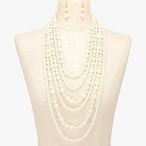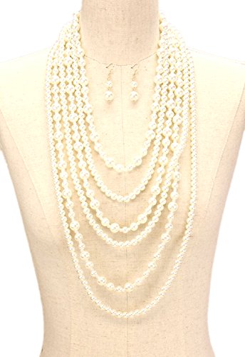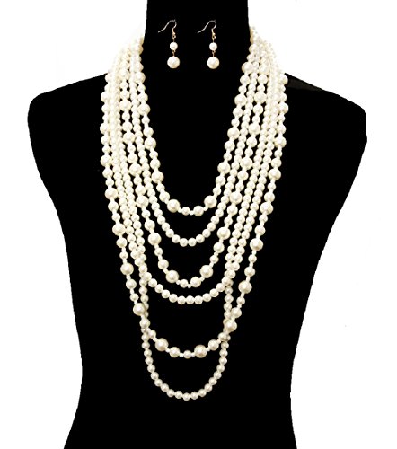 Gorgeous statement layered beaded Pearl imitation light weight acrylic pearl beads strands necklace matching hook earrings set. Elegant costume Jewelry.Feature