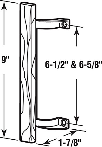 This sliding glass door pull handle is constructed of diecast mounting posts and a wooden handle. The mounting posts come finished in black colored paint, and the wooden pull handle comes finished in a clear finish. Note: Color of wood may vary per shipment. This pull handle can be installed on doors with mounting hole centers ranging from 6-1/2 in. to 6-5/8 in. center-2-center. This pull handle is surface mounted and is used by many patio door manufacturers. This item features a sturdy metal backer support behind the wood.Feature