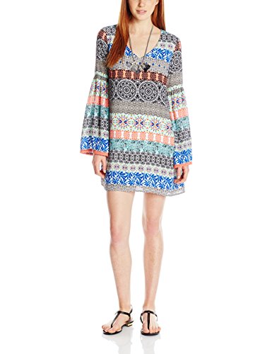 Product DescriptionPrinted peasant dress with flared sleeves and cutout detail at back and necklace0