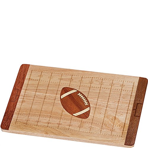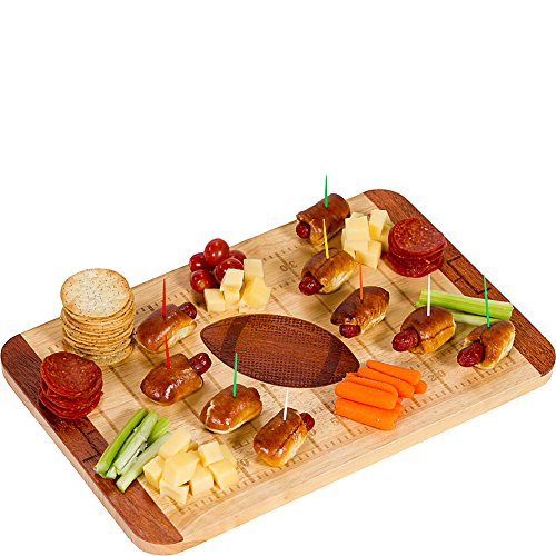 - Football field "Gridiron" shaped rubberwood serving, cutting and cheeseboard by Picnic Plus has laser etched yard lines and goal posts detailing and features a contrasting laser detailed football inset. Perfect size for tailgate parties, and home entertaining. Holds plenty of meats, cheeses, appetizers and crackers. Made with eco friendly and renewable rubberwood. The ultimate gift for any football enthusiast, man cave or sports fanatic!