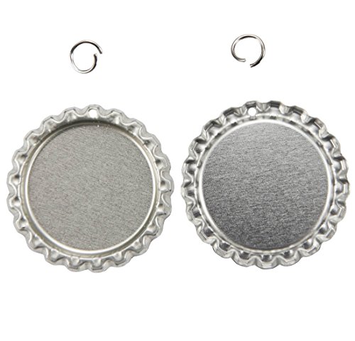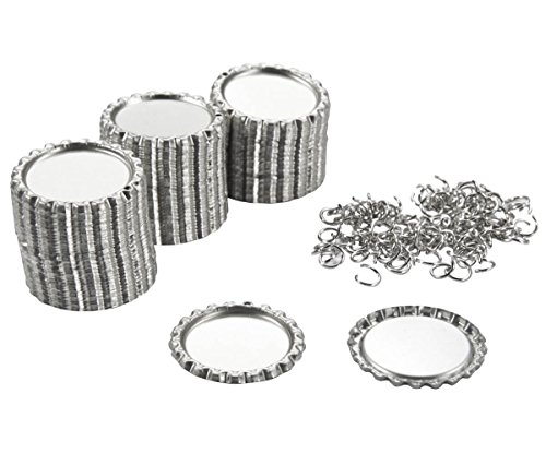 100 Flattened Flat Silver Linerless Bottle Caps with Holes plus 8mm Split Rings, Flattened Chrome Bottle caps with split rings (100PCS)