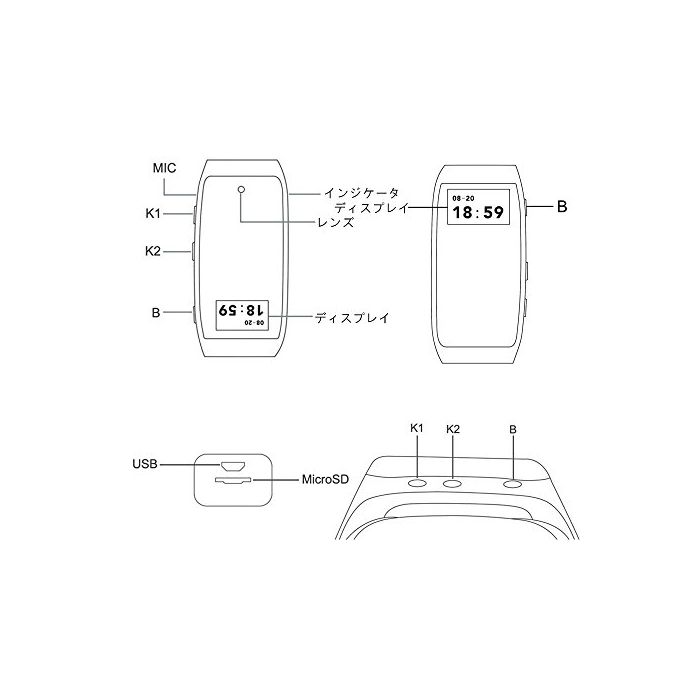 원본상품명: Anviker 1080P 着用可能スマトブレスレット型ビデオカメラ 計 腕時計 着信電話通知 SMS通知 スポツウォッチスパイカメラ 高質しカメラ 監視、音、、商談、議、講義