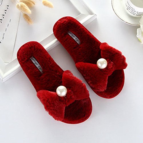 Binding : Apparel Product Description The winter warm fur slipper is lightweight, studded pearl. soft and cozy, anti-slip rubber sole house slippers for indoor, maintain the softness while keep your feet comfortable, especially on carpet.Perfect for use in Winter,and breathable will keep your feet comfortable throughout the day. making them being the best choice to against the freezing weather. 0
