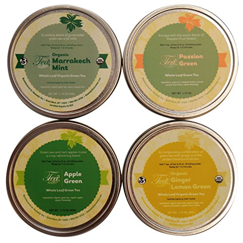 -. Feature : Enjoy a gourmet collection of 4 bestselling Heavenly Tea Leaves loose leaf green teas! / Includes: Organic Marrakech Mint, Organic Ginger Lemon Green, Passion Green, & Apple Green / Comes in an eco-friendly gift box. Makes the perfect gift! / Approximately 20 servings of tea per tin / A great way to try out a variety of different green teas