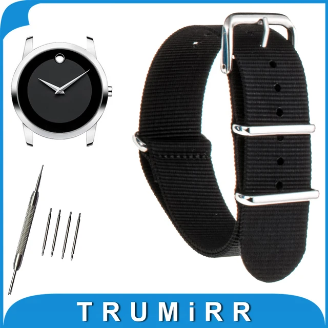 | [해외] 18 미리메터 20 미리메터 22 미리메터 나일론 시계 밴드 + 도구 movado 손목 나토 스트랩 스테인레스 스틸 핀 버클 벨트 교체 손목 팔찌 |
